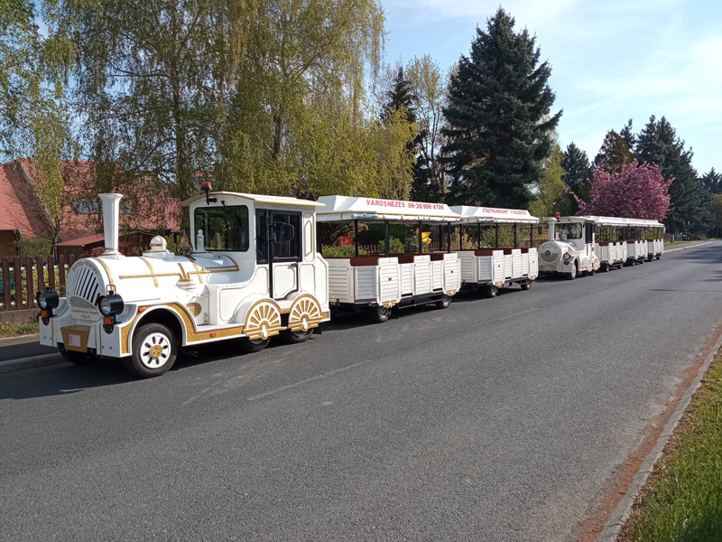 A két kisvonattal összesen 90 felnőttet vagy 120 gyermeket tudunk szállítani!